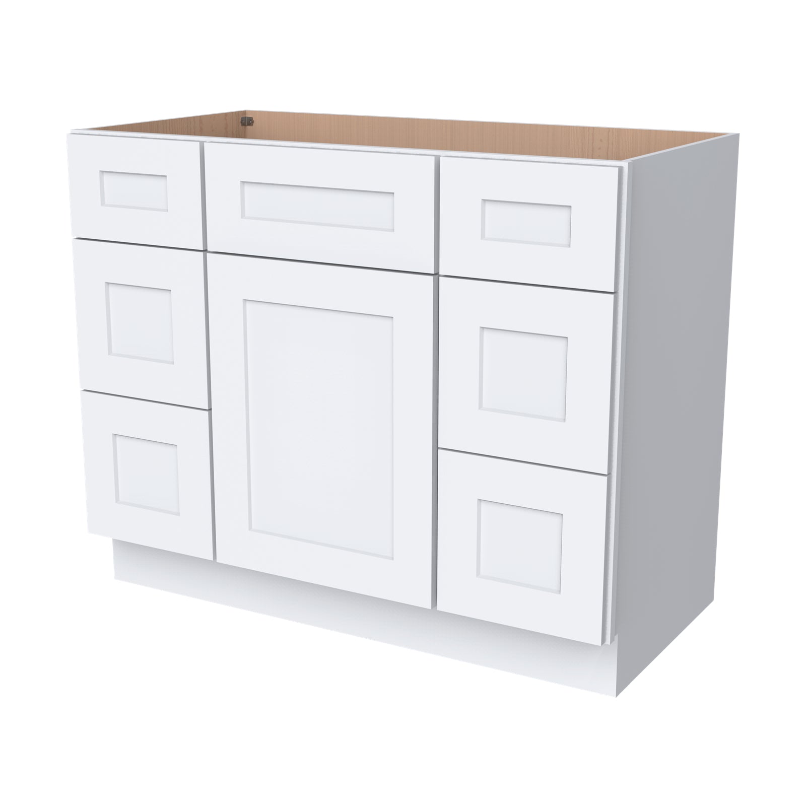 RTA Shaker Solid Wood Vanity Single Sink Base Cabinet White With 6 Drawers for Bathroom Storage